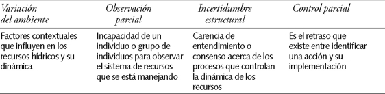 La planeación adaptativa considera que al menos cuatro tipos distintos de incertidumbre influyen la gestión de los recursos del agua (Williams y Brown, 2012): la variación del ambiente, la observación parcial, la incertidumbre estructural y el control parcial (véase el cuadro 3).