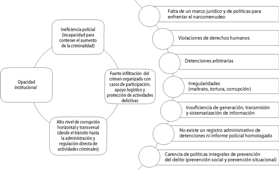 Básicamente, todas las iniciativas oficiales (Poder Ejecutivo Federal, Secretaría de Seguridad Pública Federal y Consejo Nacional de Gobernadores) apuntaban a su desaparición o bien a su integración a la policía estatal.1 El diagrama 1 enlista algunos de los aspectos criticados y problemas más recurrentes identificados en el discurso de las autoridades.