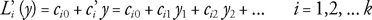 donde los coeficientes de la función de clasificación son y