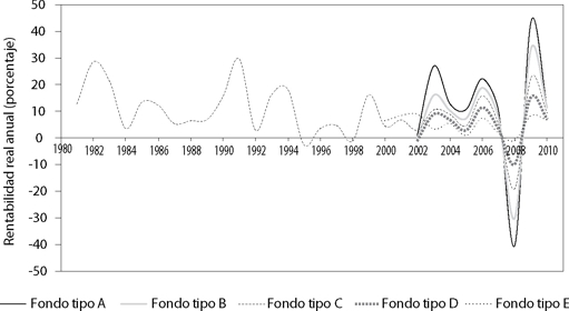 La crisis financiera internacional de fines del año 2008 generó una importante caída del valor y del rendimiento de los fondos de pensiones chilenos (gráfica 1). La caída fue cercana a 40 por ciento del valor previo, en el caso del Fondo A (gráfica 2). Parte de esta volatilidad es inherente a los mercados financieros. Sin embargo, esquemas de armonización de la regulación y de supervisión financiera, con regulación orientada a los bancos (Basilea II), pueden ayudar a prevenir crisis financieras y escándalos corporativos (Martínez, 2007). Aun así, importantes nuevos desafíos han surgido a partir de ella para las regulaciones financieras, la transparencia y una discusión del futuro desarrollo de la regulación (Liou, 2013 y 2013a).
