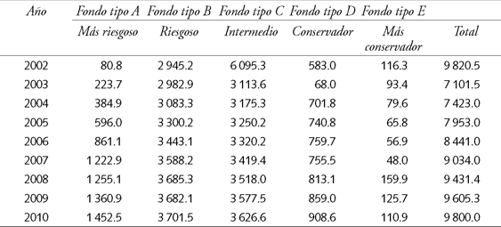 Recientes estudios reflejan la búsqueda de nuevas herramientas para un aporte sostenible de las partes interesadas en los planes de pensiones, buscando incrementar el involucramiento de los stakeholders, y la privatización de los planes públicos de pensiones bajo ciertas circunstancias (De Kruijf y De Vries, 2014). En esta línea, el sistema privado chileno parece recoger gran parte de estas propuestas. En particular, hasta enero del año 2000, las Administradoras de Fondos de Pensiones (AFP) de Chile sólo ofrecían una alternativa de ahorro previsional a sus afiliados. No existía la posibilidad de elegir un fondo que se ajustara mejor al perfil de riesgo y edad de los cotizantes. A partir del año 2002 se crea el llamado “sistema de multifondos”, el que incluyó los fondos A, B, C, D y E, siendo el fondo A el más riesgoso, y el E el menos riesgoso. Estos ajustes parecen recoger algunos de los problemas específicos de los trabajadores individuales, en la línea propuesta por De Kruijf y De Vries (2014), al permitir ejercer las preferencias individuales de los afiliados respecto al horizonte de ahorro. En efecto, los afiliados jóvenes tienden a preferir fondos con mayor riesgo y mayor retorno esperado, mientras que afiliados de mayor edad generalmente tratan de minimizar las fluctuaciones.