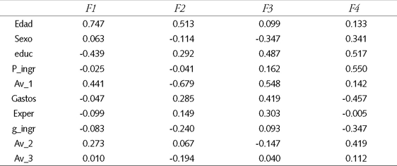 En la función F1 (la más importante) las variables más discriminatorias son la edad, la educación y las variables que miden aversión al riesgo Av_1 y Av_2. En efecto, a mayor edad, las personas tienden a preferir los fondos menos riesgosos D y E, las personas que tienen más años de formación tienden a ser menos conservadoras eligiendo los fondos A y B, y las personas que respondieron 1 o 2 en las preguntas de aversión Av_1 y Av_2 tienden a preferir los fondos de menor riesgo. Por otro lado, las variables muy poco explicativas fueron el sexo, la proporción de ingresos que en la etapa de jubilación provendrá de las AFP (P_Ingr), la proporción de los gastos futuros que serán financiados por las AFP (Gastos), la experiencia en inversiones financieras, la capacidad de generar ingresos actualmente (g_ingr) y el indicador de aversión al riesgo (Av_3).