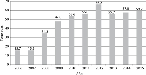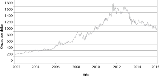 En términos de mercado, la demanda mundial de oro presionó los precios al alza (mientras el primer lustro del siglo registró un valor promedio inferior a los 300 dólares por onza, en agosto de 2011 la cotización alcanzó los 1 884 dólares, véase gráfica 1), razón por la cual, la explotación y la comercialización del oro se hicieron especialmente atractivas para los inversionistas: en un lustro la producción aurífera nacional se cuadruplicó (véase gráfica 2). En términos de Estado, arreciaban las medidas para la erradicación de cultivos ilícitos de coca al tiempo que se fomentaba la inversión minera en el país.