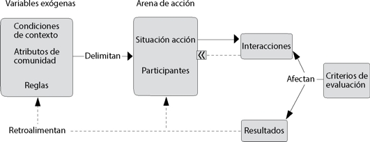 Con este reto semántico en mente, para orientar el análisis de este caso, se propone acudir al análisis institucional y de desarrollo (institutional analysis and development, IAD) popularizado por Elinor Ostrom y quien asegura que: