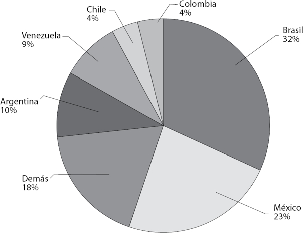 Asimismo, aparte de los inconvenientes de eficiencia en la producción de energía, Edenhofer y Jaeger (1998) sostienen que un país puede tener también importantes problemas debido a la no adecuada gestión de las políticas públicas en general; en cuanto a los impuestos sobre la energía, los subsidios a la energía y los límites de consumo de energía, que pueden agravarse por la excesiva demanda, tal como sucede precisamente con México. El país alcanzó, según el Banco Mundial (2011a), entre el año 2004 y el año 2010 un promedio de 175 165.9534 kT ocupando así la posición trece a nivel mundial de los países con mayor consumo de energía en petróleo, y la posición dos, después de Brasil, de los países latinoamericanos con mayor consumo (véase gráfica 3); por lo tanto, se puede afirmar que este país posee un problema estructural y una contradicción significativa que lo ha obligado, como un importante pero ineficiente productor de petróleo, a implementar subsidios para la energía con el fin de ofrecer gasolina y combustibles baratos a su población. Este tipo de desequilibrios genera problemas de tipo fiscal, que además conllevan a una situación de insostenibilidad; por eso en algunos países los déficit presupuestarios están tornándose inmanejables y amenazan la estabilidad de las economías (FMI, 2013).