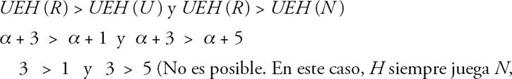 Ahora bien, para que la estrategia (AcR), por ejemplo, sea una ENEP, se deben presentar las siguientes condiciones: D > T + E, D > D + E – M, – CAc > – CBc. Lo anterior tampoco se puede confirmar de forma intuitiva.