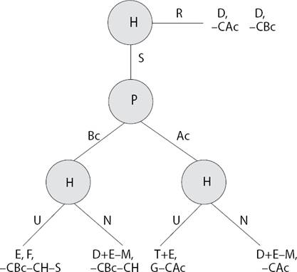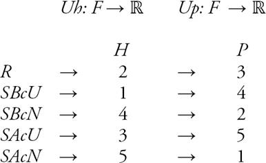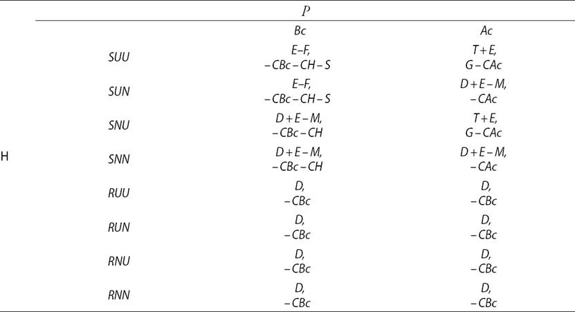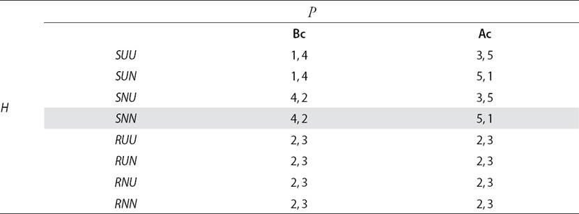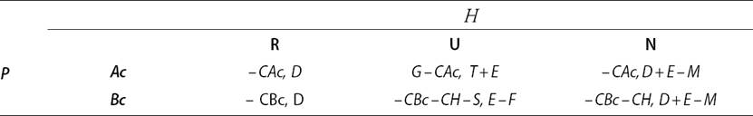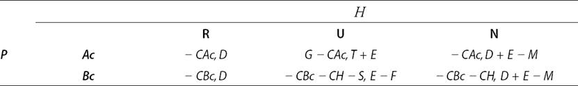 H = {∅, R, S, SAc, SBc, SAcU, SAcN, SBcU, SBcN}