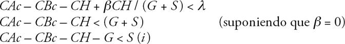 λ > [(CAc – CBc – CH)] / [(G + S)]