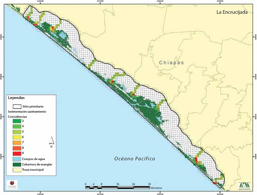 Conforme a lo anterior, no cabe duda de que un análisis extenso de las modalidades de causalidad puede arrojar nueva luz sobre las causas y consecuencias de las PP no integradas, mismas que generalmente se presentan de manera indirecta, contextual y retrasada. Además, permite oponer evaluaciones fundadas y verificables contra alegaciones simplificadas que, sin embargo, son populares, tales como: “el gobierno destruye los manglares”; lo cual resultaría o propiciaría una discusión más constructiva y balanceada acerca de la pertinencia y modalidad de una IPA en diferentes contextos sociopolíticos y espaciales. En cuanto a la práctica operativa, las PP integradas deberían centrar su atención en tratar de mitigar los efectos de la sedimentación en los espacios más amenazados, indicados en los Mapas 1 y 2. Asimismo, sería recomendable enfocar el monitoreo del estado de los manglares en la costa chiapaneca en los cuadrantes arriba señalados.