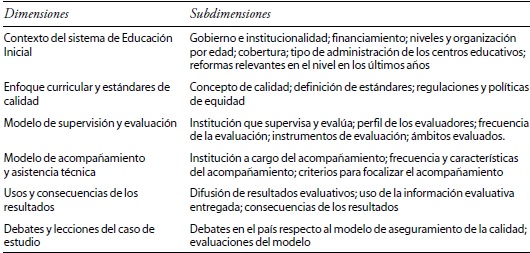 La información recabada se analizó de acuerdo con las dimensiones y subdimensiones que se muestran en el cuadro 1. Una vez analizado cada caso de estudio por país, se realizó un análisis comparativo utilizando las dimensiones definidas, y se consideró el contexto histórico y socioeconómico particular de cada caso.