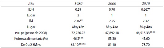El cuadro 2 muestra que en el estado de Chiapas, los niveles de pobreza se han mantenido muy altos y la economía no se ha recuperado de la gran contracción que sufrió en la década de 1980. En la entidad, tres de cada cuatro trabajadores ocupados siguen ganando menos de dos salarios mínimos (en Nuevo León el porcentaje se reduce a uno de cada cuatro).