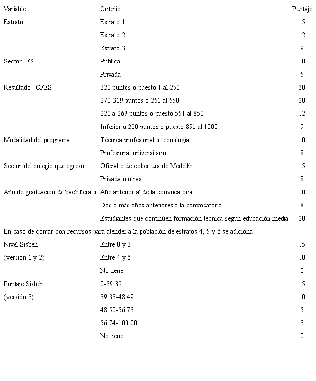 Para acceder al programa,5 en primer lugar el aspirante debe cumplir con los siguientes requisitos: a) haber nacido en Medellín o llevar domiciliado mínimo los últimos cinco años. Si es víctima del conflicto armado, desplazamiento, población afrocolombiana o indígena, el tiempo de permanencia mínimo es de dos años; b) llevar mínimo dos años de domicilio en la comuna o corregimiento por la cual aplica; c) estar en proceso de admisión, ser admitido o estar estudiando en una institución de educación superior (IES) en la ciudad; d) haber presentado pruebas Saber 11 y e) no poseer título universitario (excepto modalidad de ciclos).