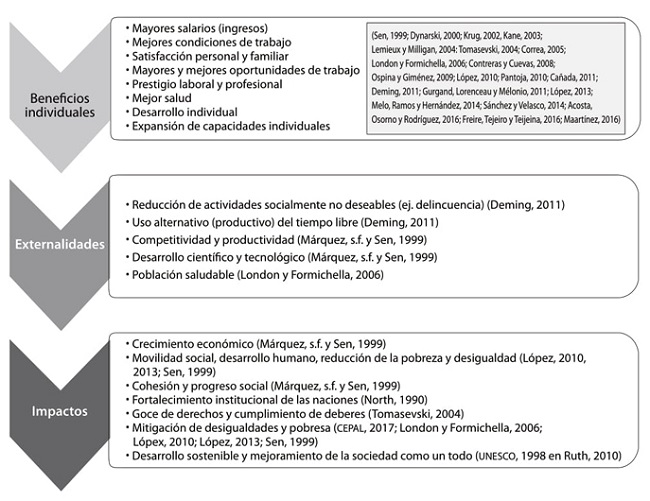 El acceso a la educación es un determinante de las posibilidades futuras de empleos bien remunerados, constituyéndose así en un factor preponderante de movilidad social, desarrollo humano, reducción de la pobreza y desigualdad (López, 2010, 2013; Sen, 1999). La educación y el acceso son elementos indispensables para lograr un legítimo desarrollo y una eficiente organización social.
