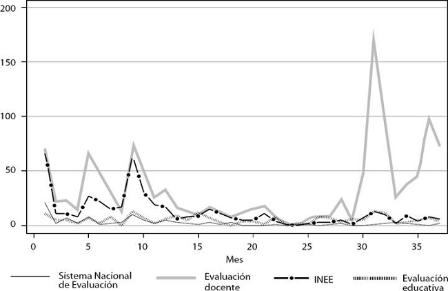 En este sentido, se puede hacer referencia al interés noticioso de los medios de comunicación que, a su vez, tiene un efecto en el entendimiento global de los problemas públicos. Estos conflictos estuvieron ligados principalmente al tema de la evaluación educativa, el cual, a su vez, fue el que recibió mayor atención por parte de los medios. Estos hallazgos nos permiten reforzar la idea del interés noticioso de los medios y el papel del conflicto en los cambios de política.