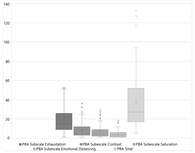 A glance at the scores of each subscale of the PBA shows an also interesting panorama (Figure 3).