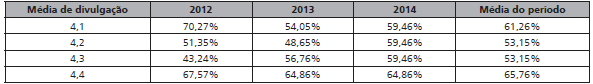 Observe a seguir o Quadro 3 referente à média de divulgação nos três anos por item: