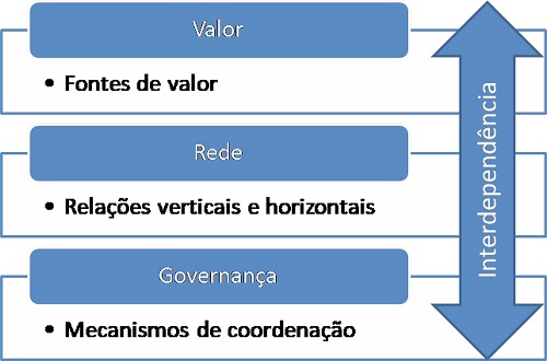 Trienekens (2011) propõe que a análise de cadeias de valor em países em desenvolvimento deve ir além da discussão sobre acesso ao mercado e levar em conta três elementos essenciais: a estrutura da rede e as relações verticais e horizontais na cadeia; a agregação de valor e a governança e os arranjos organizacionais entre os agentes da cadeia. Nesse sentido, ao considerar a abordagem de netchain, proposta por Lazzarini, Chaddad e Cook (2001), diferentes formas de criação de valor são enfatizadas em arranjos com interdependência recíproca, para além daquelas associadas à padronização e coordenação vertical da cadeia. Para os autores, o valor criado na situação de interdependência recíproca tem forte relação com coespecialização do conhecimento, laços fortes e alta densidade da rede. Conforme destacado pelos autores, a coordenação entre os agentes não é motivada unicamente pela redução dos custos de transação, uma vez que as relações podem envolver a criação de valor, por meio, por exemplo, do compartilhamento do conhecimento. Entende-se ainda que a distribuição e a transferência do valor gerado ao longo da cadeia dependem da coordenação entre os agentes.