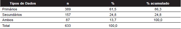 A maioria dos estudos apresentados no EMA utilizou dados primários (n=389; 61,5%), como apresentado na Tabela 11.