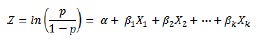 em que p é a p robabilidade de ocorrência de determinado evento de interesse; Xi, variáveis explicativas; α e β, coeficientes do modelo.