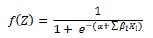 Portanto, f(Z) representa a probabilidade de a variável dependente ser igual a 1, dado o comportamento das variáveis explicativas (X i ), podendo ser expressa por: