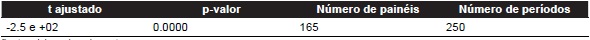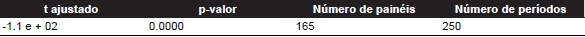 Após a realização do primeiro teste de raiz unitária em painel, foi possível observar que a série é estacionária, ou seja, não apresenta raiz unitária. A Tabela 4 demonstra o resultado do teste de raiz unitária.