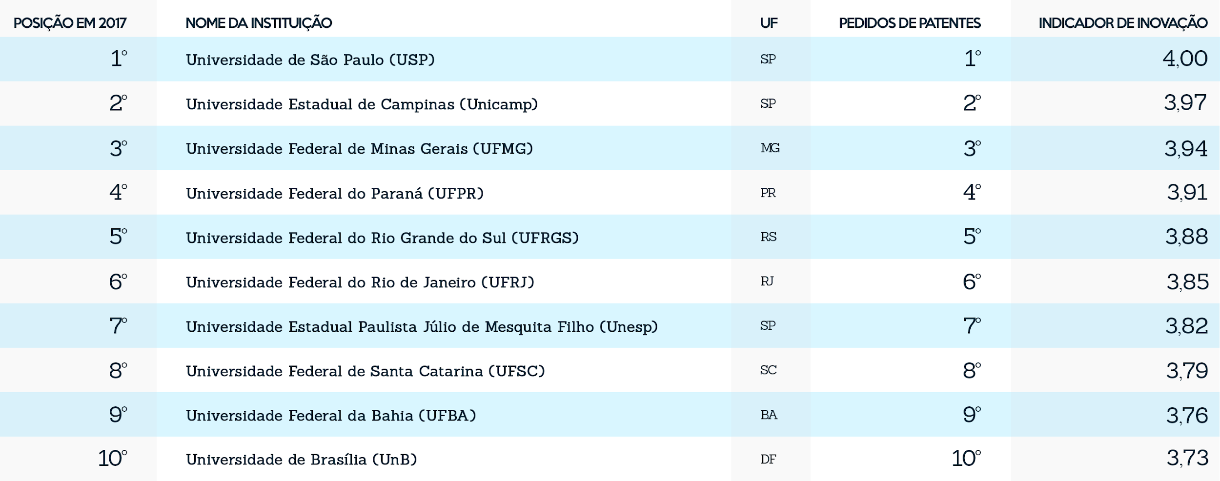 3.1 As universidades mais inovadoras do Brasil em 2017 e 2018