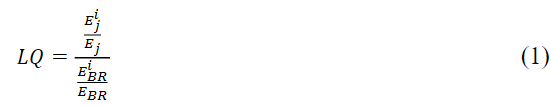 According to Crocco et al. (2006), it is possible to consider that there is specialization of activity i in region j, if its LQis greater than one. A second criterion for assessing the region-activity pair is in terms of its national relevance. For this purpose, the relative participation of the region-activity pair in the national employment must be at least 1% of the national employment of that sector. Agglomerations with LQ > 1 and relative participation greater than 1% should then be controlled by the density criterion, in which only clusters will be considered those agglomerations that present at least ten establishments in the respective sector and more than ten in associated activities.