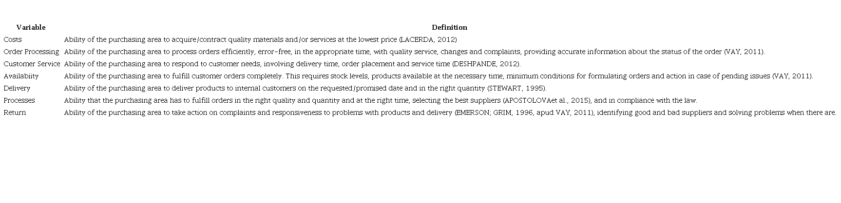 VAY, I. H. Avaliação de desempenho logístico no serviço ao cliente baseada na Teoria da resposta ao item (Tese de Doutorado) Universidade Federal de Santa Catarina, Florianópolis, Santa Catarina, Brasil, 2011. Recuperado de: https://repositorio.ufsc.br/xmlui/handle/123456789/94947.