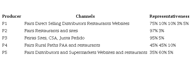 Regarding the channels used, for many producers the distribution chain is restricted to organic products fairs. According to three interviewees, the fair represents between 95% and 100% of their sales. One interviewee said that many establishments, including owners of websites, restaurants, bistros and small stores, buy at fairs instead of directly from the producer, which ends up distorting the perception of producers about the chain in which they participate, since what the producer understands to be a sale at the fair will, in practice, be commercialized through another channel, even without him or her being involved in this process.