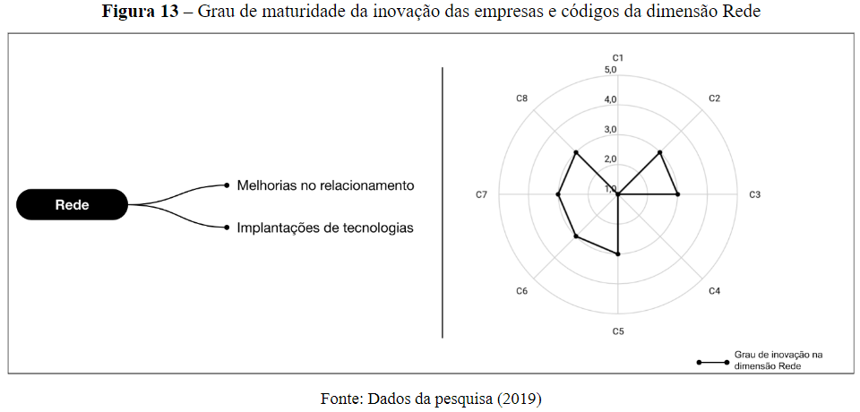 Para melhor compreensão das ações inovadoras relacionadas e suas inter-relações, serão apresentadas as variáveis utilizadas para medir cada dimensão, as inovações encontradas, as redes individuais e a representação gráfica da pontuação das empresas em cada dimensão do Radar da Inovação.
