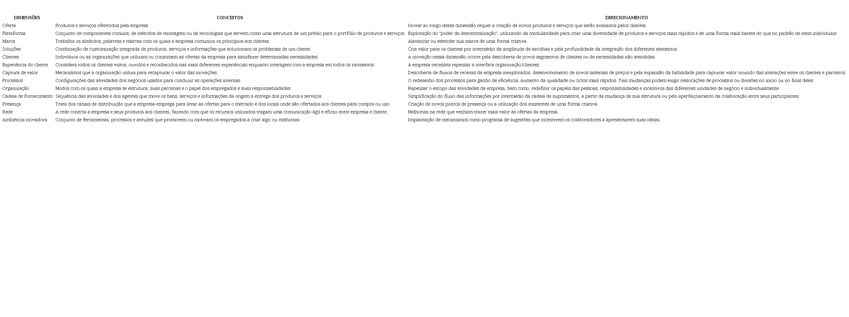Como é possível observar no Quadro 1, para que as empresas consigam inovar adequadamente dentro de cada dimensão, existem direcionamentos necessários para que isso possa ocorrer de forma mais efetiva. No entanto, a demanda por inovação dependerá da necessidade de cada empresa, na qual características relacionadas à organização, como a atividade, setor e segmento do mercado, porte etc., devem ser levadas em consideração para a tomada dessa decisão.
