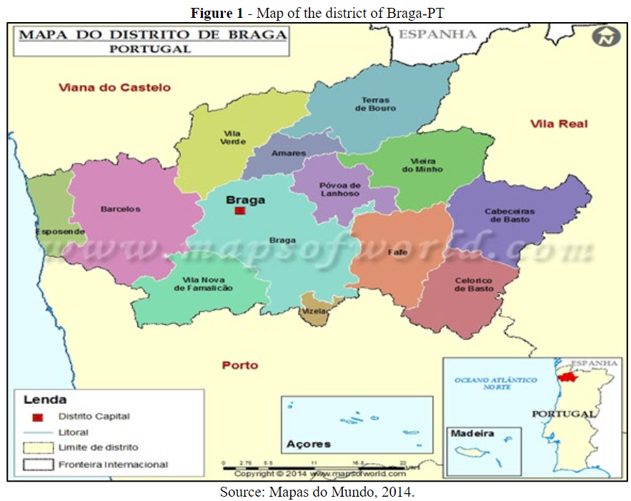 MAPAS DO MUNDO. Mapa do Distrito de Braga Portugal. Copyright © 2014, Maps of World, 2014. Disponível em http://pt.mapsofworld.com/Portugal/dstricts/Braga.html. Acesso em: 25 ago. 2020.