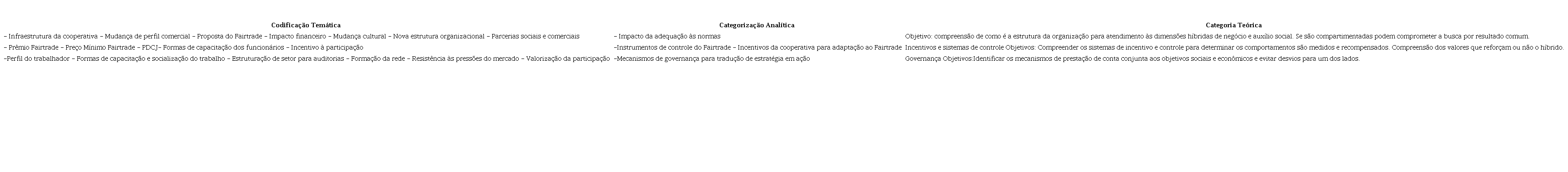 Assim, esse estudo avança na discussão das organizações híbridas por evidenciar que os mecanismos de certificação pré-determinados como o Fairtrade, podem comprometer o projeto híbrido das cooperativas, uma vez que, indiretamente, ao se aproximarem das demandas de mercado, podem comprometer a vertente social.
