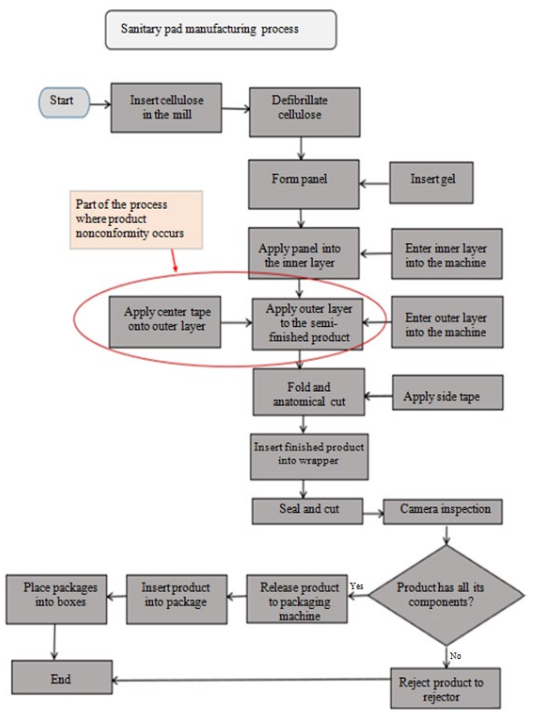 This work is relevant because the company under study faced the issue of finished products being rejected because of quality because they did not conform to specifications. In 2016, 40,320 sanitary pads units were rejected for quality, and in 2017, there were 473,280 units. This caused waste of raw material and costs, which could generate loss of consumer preference for the brand and, consequently, loss ofcompetitiveness in the market. One of the authors worked at the company in the quality department and did not understand why the organization did not seek to solve the problem. This inaction on his superiors’ part caused him both great discomfort and curiosity about the possible causes of the problem.