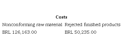 After proving the nonconformity of the raw material, the supplier was promptedto start an internal investigation process to determine the root cause of the problem and take appropriate corrective actions. There was a survey of the costs involved, as shown in Table 2, and it was sent to the procurement department for negotiation with the supplier. Note that the company had a total loss of R$176,398.00 with nonconforming raw material and rejected finished products.