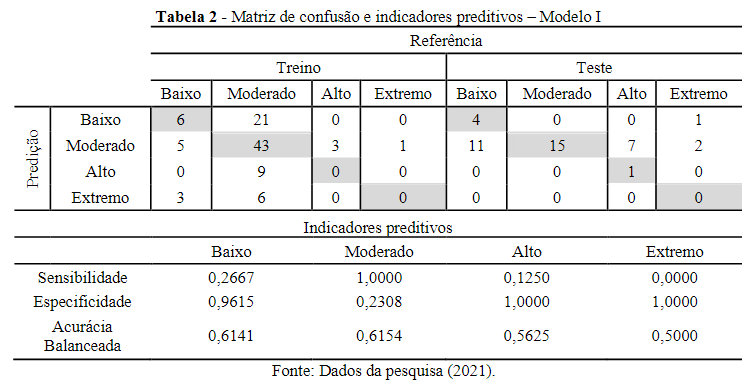 The support for the results of Models I and II was based on the evaluation of the confusion matrix, predictive performance indicators, and indexes for assessing variableimportance.