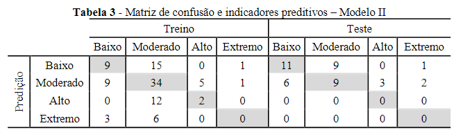 For the analysis presented, the situations considered as true positives (VP) and true negatives (VN) are desirable, i.e., the predictive hits generated in the model. In the following topics, these concepts are developed to understand the results.