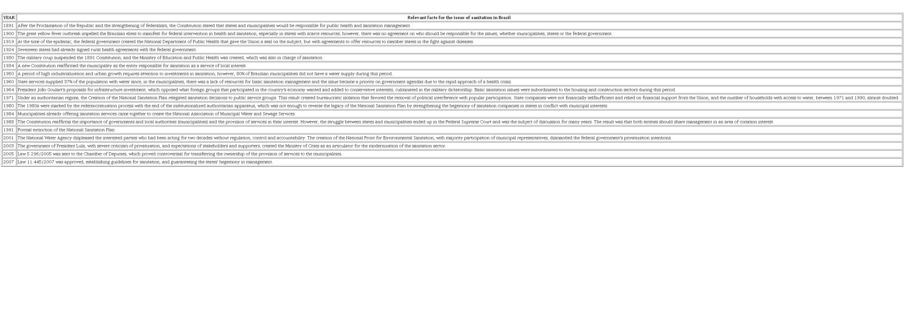 TABLE 1 - History of Relevant Facts for Sanitation in Brazil