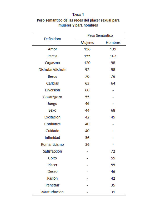 Palabras clave: placer sexual, pareja, amor, orgasmo, redes semánticas.