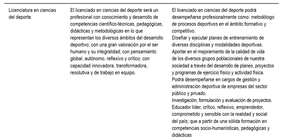 Keywords: training programs, degrees in sports, occupational profile, professional profile, physical education and sport.