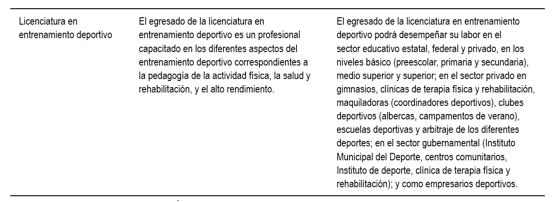 Durante la formación de estas carreras profesionales, se facilita la formación específica; la adquisición de fundamentos científicos; la vivencia de experiencias para su aplicación en el campo del entrenamiento deportivo; las ciencias aplicadas al deporte; los beneficios del ejercicio físico sobre la salud y las enfermedades crónicas; el mantenimiento físico y rendimiento deportivo; además, se estudian técnicas para evaluar y mejorar el rendimiento deportivo; la forma física y el estado de salud; igualmente, métodos de enseñanza, técnicas y tácticas en el entrenamiento deportivo. Según Dewey (2001), en el entrenamiento deportivo existe una transmisión de conocimientos, creemos que estos no sólo deben conocer el contenido, también el desarrollo pedagógico del mismo.