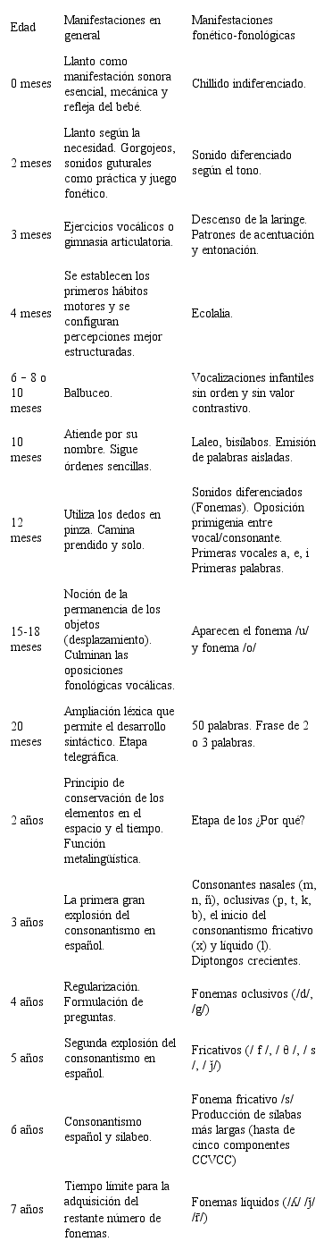 Como se puede ver a los siete (7) años, los niños culminan el desarrollo fonético-fonológico.