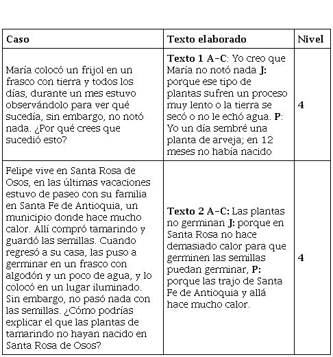 El análisis del caso presentado, a partir de los episodios orales y los textos escritos suscitados por situaciones concretas sobre la germinación de semillas, permiten ratificar la pertinencia, primero, de la enseñanza de la argumentación en ciencias en el contexto de la básica primaria y, segundo, la pertinencia de promover desarrollos tanto en el patrón temático como estructural; esto, porque: