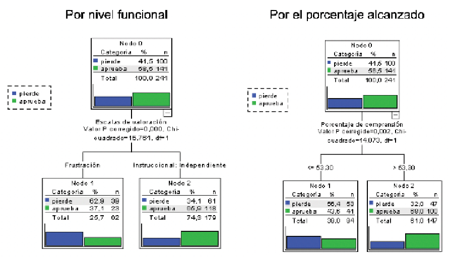 En términos de tomar decisiones se aplicó la técnica del árbol con los siguientes resultados para la asignatura de matemática, considerando los niveles funcionales y, de manera general, el porcentaje alcanzado en comprensión lectora (figura 3).