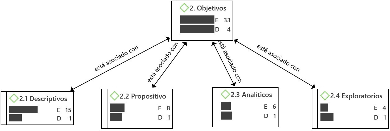 Dentro de la presente categoría de análisis se identifican cuatro subcategorías que emergen de las investigaciones revisadas, encontrando recurrencias desde los siguientes tipos de objetivos: descriptivos, propositivos, analíticos y exploratorios.