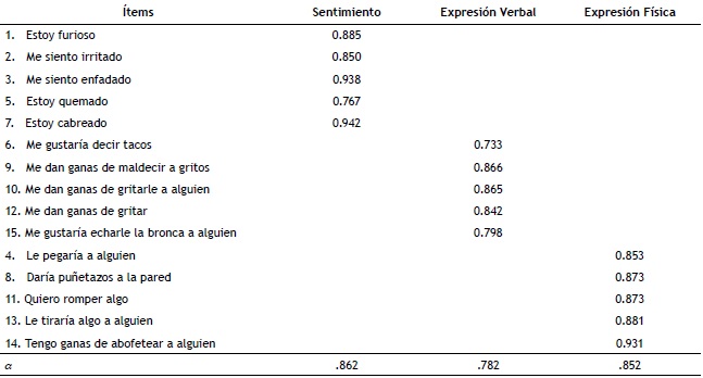 Análisis Factorial Confirmatorio y Consistencia Interna: Expresión y Control de la Ira.