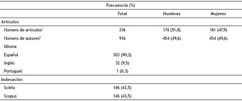 Por su parte, los artículos publicados dan cuenta del trabajo de 916 autores distribuidos equitativamente por sexo, tanto en calidad de primer autor (47,9% son mujeres) como del número total de autores (49,6% son mujeres).