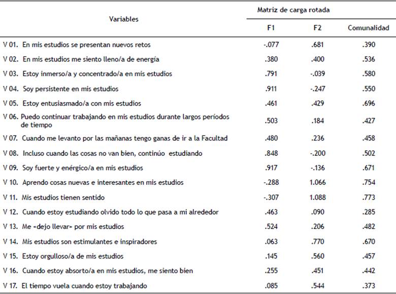 Parra y Pérez (2010), analizan el compromiso académico de 164 estudiantes de psicología a través del cuestionario UWES-S (Schaufeli, Martínez, Marqués-Pinto, Salanova, & Bakker, 2002) cuyas propiedades psicométricas se han estudiado en Europa, confirmándose dos factores emergentes: predisposición a estudiar y satisfacción con los estudios.