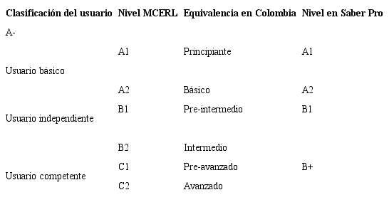 En contraste, el estudio de Sánchez (2013) muestra que al analizar históricamente el desarrollo del conocimiento del idioma inglés hasta 2011, los resultados han sido bajos, a pesar de las metas y programas del Gobierno Nacional. Así, el 90% de los estudiantes de educación media alcanzan un A1; mientras que en la educación superior, dicha proporción es del 60%; solo el 2% de los bachilleres alcanzó el nivel B1 y en la educación superior el 6,5% el nivel B+.