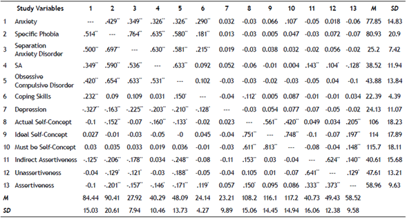 Self-concept and assertiveness were found negatively related to anxiety disorders in both genders, which lead to infer that “poor” thoughts regarding self could predict SA. These findings can be explained with SA Models because they stress the importance of negative self-perceptions in maintaining SA.